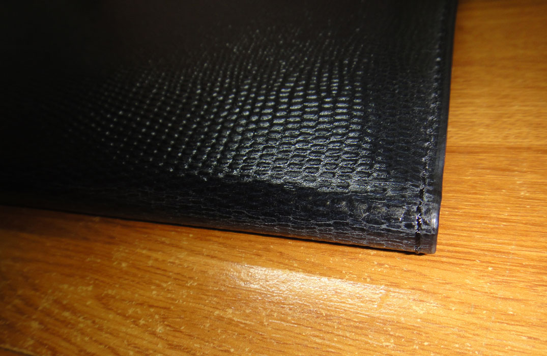 素材がテカテカしていて如何にもナイロンという感じで安っぽく、さらに高級感を出そうとして、素材表面にリザード柄の型押しをしてあるのですが、これがかえって下品な印象に。(個人差あるかもしれません)